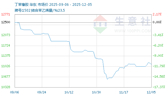 12月5日生意社丁苯橡胶基准价为11141.67元/吨