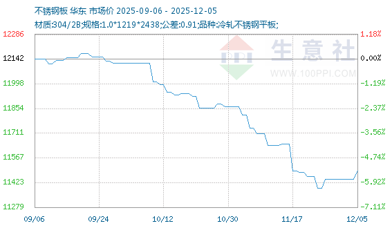 12月4日生意社不锈钢板基准价为11441.67元/吨